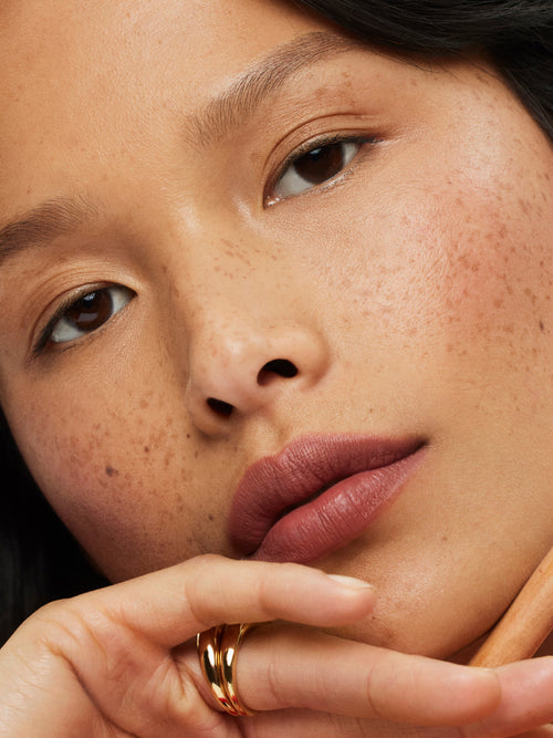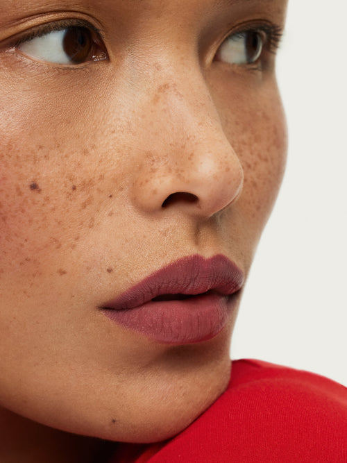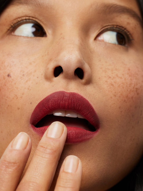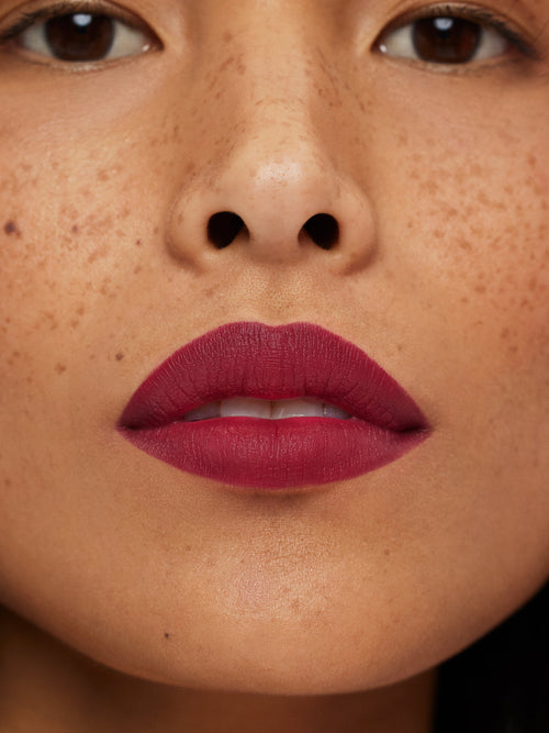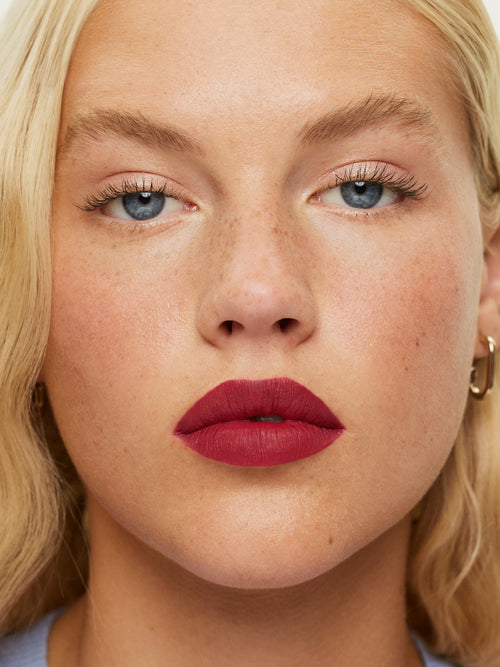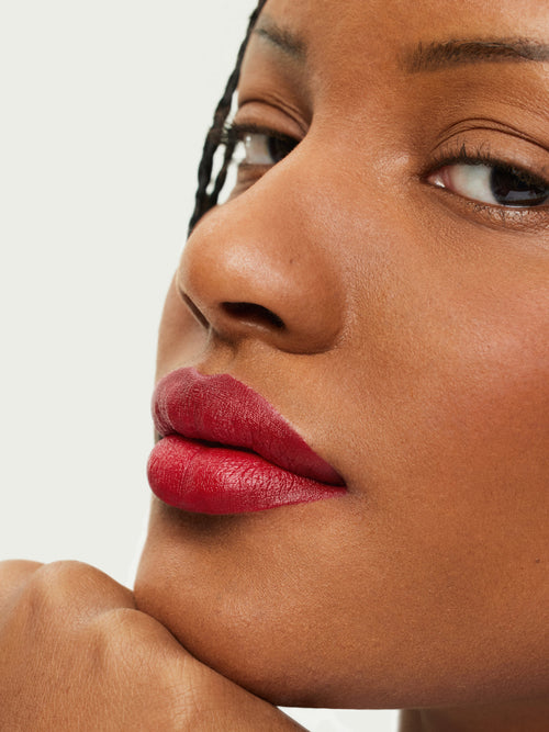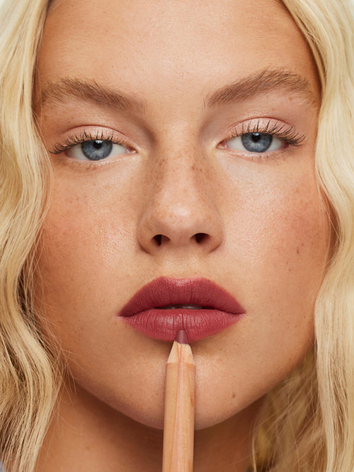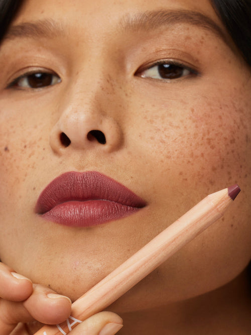 We love to layer Lip Sketch with Color Block Lipstick for more definition. Lip Sketch may feather if lip glosses or oils are layered on top, so we recommend wearing it on its own or paired with a lip product with a matte, satin, or cream finish.