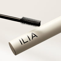 Limitless Lash Mascara Black Mascara Brush with ILIA container. One Mini size mascara is pictured. Limitless Lash Mascara Black Mascara Brush with ILIA container and two award winning seals from allure and glamour magazine. One full size mascara.